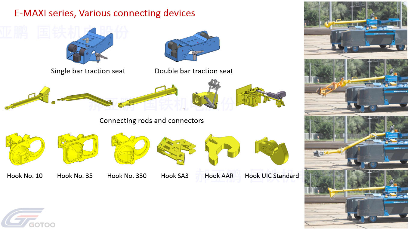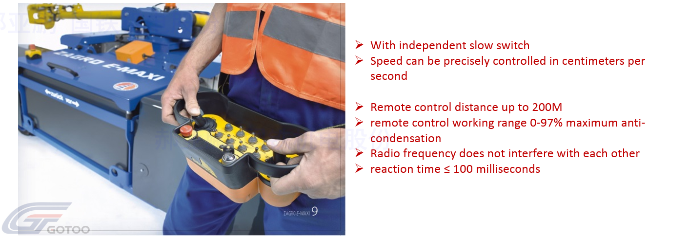 The ZAGRO E-MAXI railroad car is a tractor that can be used for the shunting operation in different fields such as railways, public transportation, and industrial maintenance. Due to the emergence of ZAGRO E-MAXI tractors, the way of internal and external joint operations can be realized. On the track, it represents clean energy, environmental protection, and zero emissions operations. The new development of the battery-driven dual-use vehicle technology is based on the long-term experience of ZAGRO. The technology with four continuously variable motors and independently driven wheels and the patented track guide lead the new wave of tractor technology.