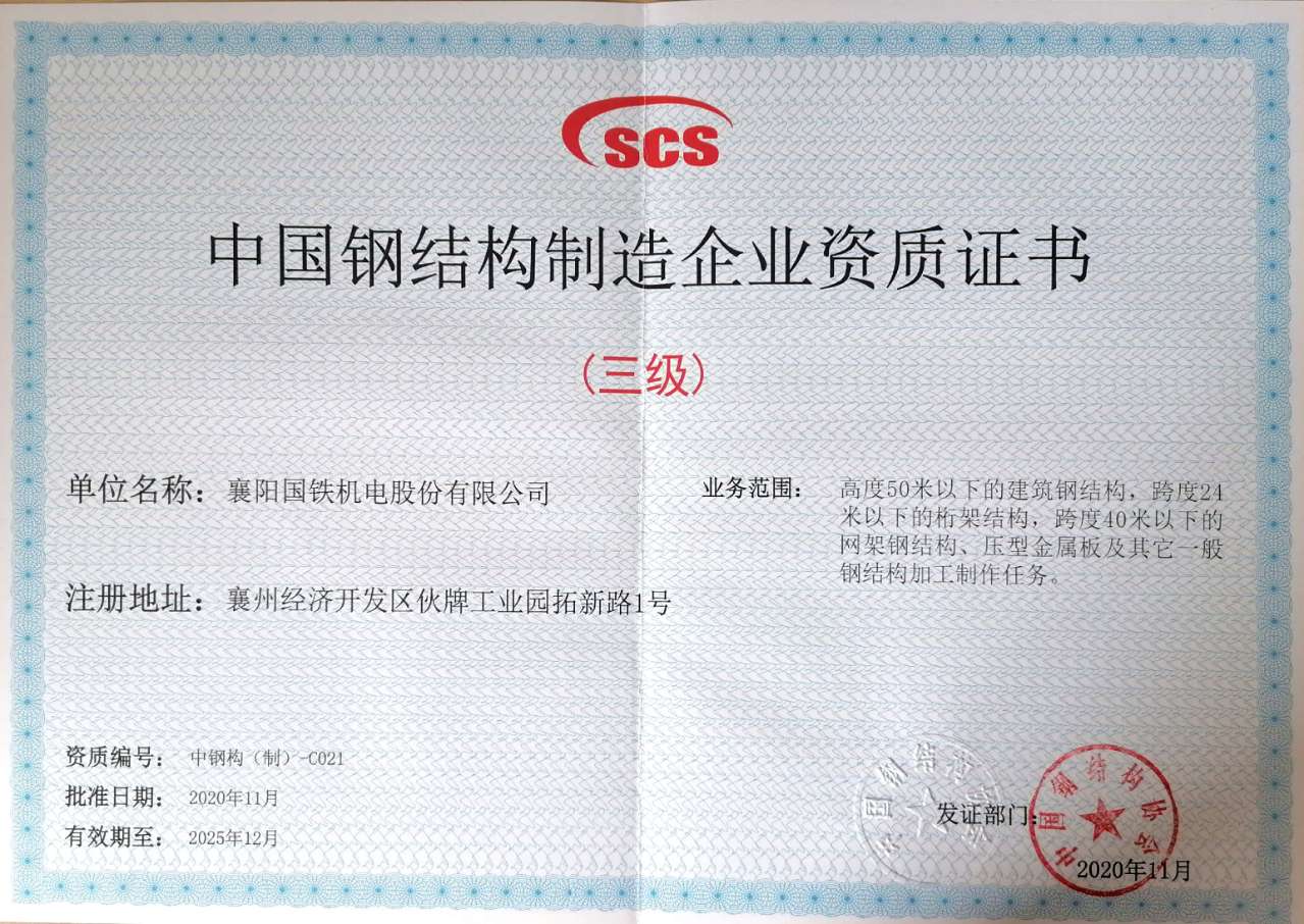 中國(guó)鋼結(jié)構(gòu)制造業(yè)企業(yè)資質(zhì)證書(shū)