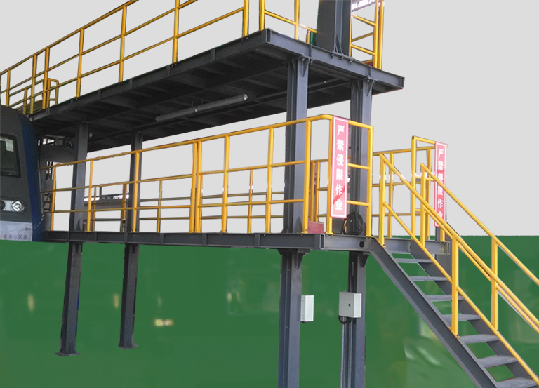 三層整備作業(yè)平臺(tái)適用于各型機(jī)車檢修整備作業(yè),方便檢修整備作業(yè)人員對(duì)機(jī)車車上部件的檢查、檢測、清潔保養(yǎng),保證檢修整備人員上下機(jī)車的安全。